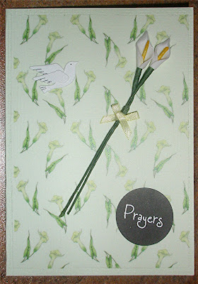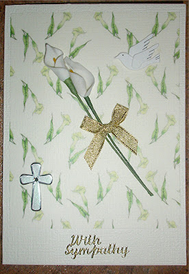 I needed to make some more sympathy cards for my box, so I found a piece of vellum with lillies - I cut into four so that I could make the four cards and ran it through my xyron, but the cartridge run out just before the end of the vellum, which is why two cards have shorter pieces and I've filled the gap with a 'with sympathy' peel off.