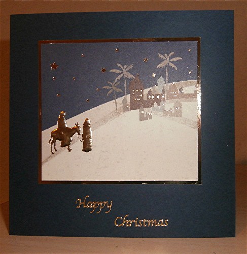 My cards are clean and simple, using recycled pictures from Christmas cards received - all mounted on to offcuts of gold mirror card, with some peel off sticks and glitter strips added. The sentiments on the middle one say: Peace Joy Hope.