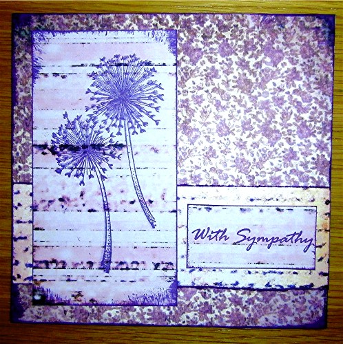 I used one of my favourite Penny Black stamps called sparklers, inked with memento grape jelly, using the same ink arrange all paper edges. The sentiment stamp was from Hobbycraft.