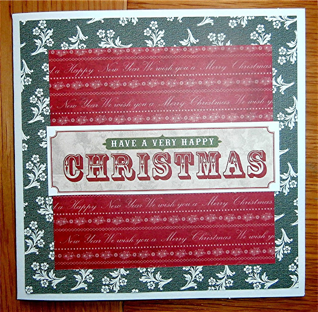 The background paper is from a Papermania pad, the red paper and the large sentiment panel is from the Craftwork Cards Christmas past collection