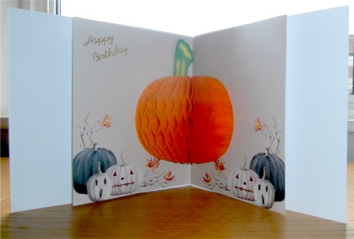 As I said in the previous post, I saw some pumpkin decorations recently and thought they would be perfect to put inside the halloween cards - there were two in the pack - they were meant to be put together to make a hanging decoration, but they were ideal for what I wanted, stuck inside so that the pumpkin opened up with the card: