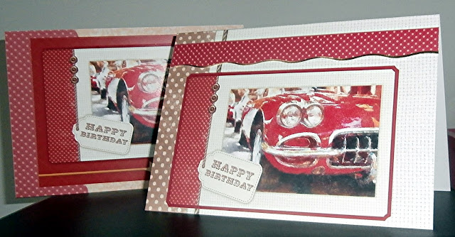 Two cards for male birthdays using more supplies from the C & C birthday kit. The second picture shows the back of the right hand card, with the blank made from a piece of A4. The one on the left is a side opening landscape A5.