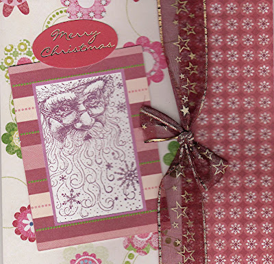 I bought Cats Set 2 from Tanda Stamps ages ago and still hadn't used this 'cat's face' stamp, so I thought it was about time I did. I stamped with black versafine and embossed with detail clear. What a difference the ink makes - I tried at first stamping with versamark and heating with black embossing power, but, oh dear, I couldn't see the detail of the face at all. Versafine was excellent for this and the detail EP helps as well.