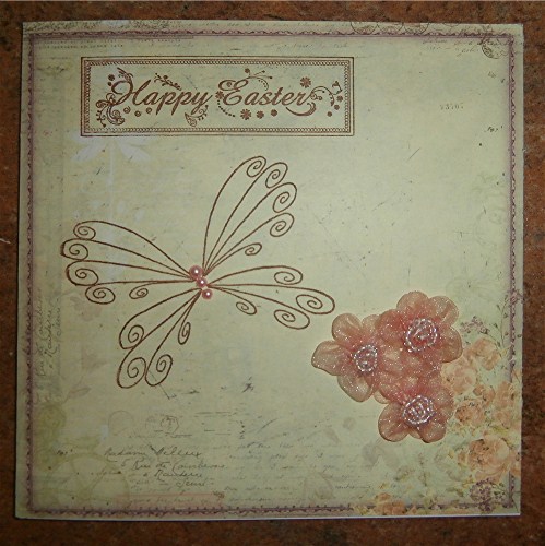 Another Easter card using a piece of K & Co daffodil paper - the paper is so pretty that it doesn't need much added, so a couple of Easter eggs and tiny flowers from Poundland and three lovely shiny butterflies with pearls added for a bit more bling, plus papermania sentiment stamp.