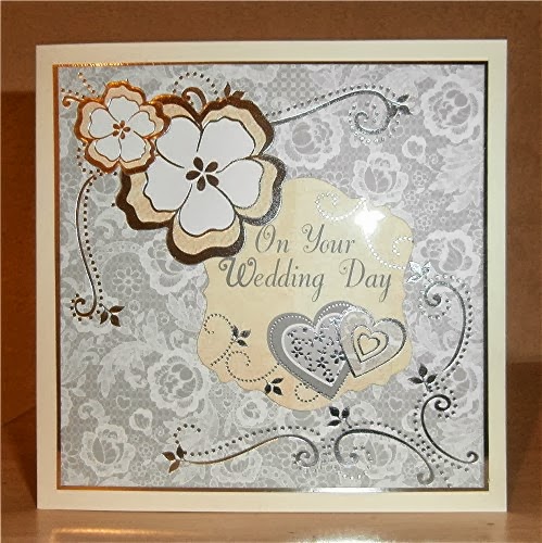 This is a card that I was asked to make for a daughter's birthday, with a dance theme. The background card is 'dancing feet' by Kanban and the pictures are Kanban too. Flowers are Craftime. This is an A5 card to accommodate the die cut images.