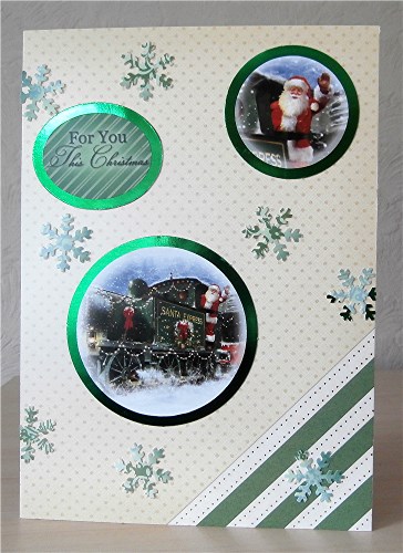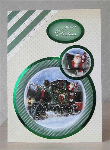 They were made by using die cuts from the 'Santa express' sheet from the Hunkydory vintage Christmas collection together with matching card. They are A5 size.