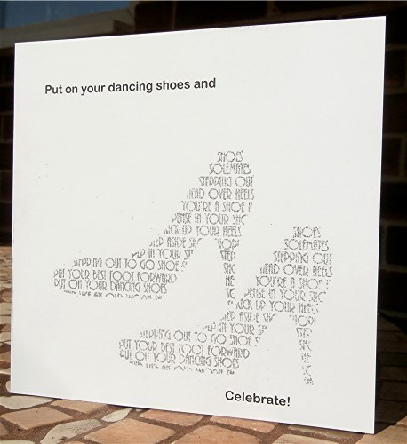 A CAS card using the lovely My Sentiments Exactly shoe stamp twice, inked with versamark and heat embhossed with silver sparkle glitter embossing powder. I just fancies making something a bit different and I love this stamp and don't often get to use it.