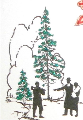 For my first card I've concentrated on the colours, also the trees, using a stamp supplied by Flonz craft, one of the sponsors of CHNC challenge 137. I inked with versafine onyx black and dotted the trees with a quickie glue pen on to which I put some Art Institute green glitter. Papers are from my Christmas offcuts box and the ribbled snowflakes are from Hobbycraft.