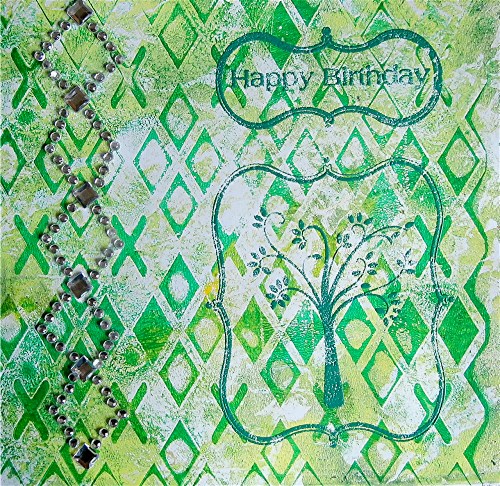 This is another card using a background made with a gelli plate print. I created a base with a pale green acrylic paint, using scrunched paper to take away some of the paint and then used the That Special Touch 'argyle' mask with a darker acrylic to create the pattern.