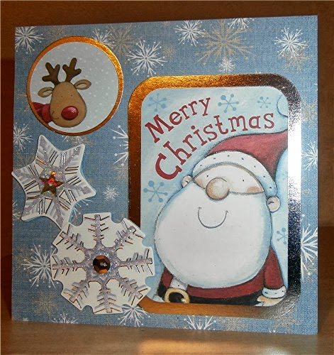 This is a quick Christmas card made with some Kanban card and toppers from an old kit, with a couple of snowflake stickers that I think came from The Works.